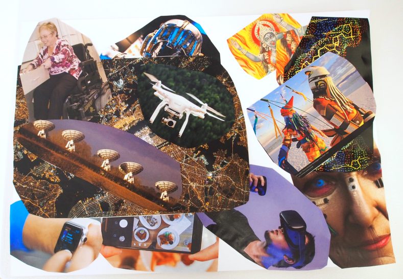 Many of the images were print-outs of images found online but we also found some great images in second-hand books and magazines. The task was to combine images you felt drawn to in order to explore the connections between the project themes: ageing, women, futures and technology.
